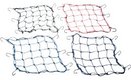 Handy 15 x 15 bungie cargo net with 3 Coated Metal hooks on each side. Allows odd shaped items to be easily fastened to your bike or carriers. Everybody needs at least one!